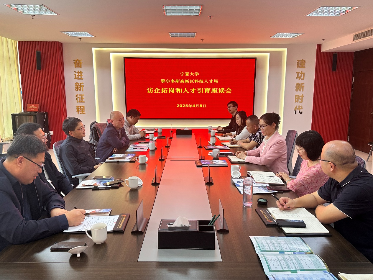 在宁夏大学与鄂尔多斯高新区科技人才局共同召开的访企拓岗和人才引育座谈会上,高新区科技人才局局长尚秀珍介绍了当地的产业发展规划、人才政策以及对高校毕业生的引进需求,双方围绕加强校地合作、促进高校毕业生留鄂就业创业等话题进行了充分交流。